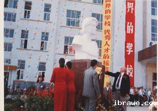 ◆ 世界第一座海伦·斯诺雕像在西安落成。9月21日是海伦·斯诺的诞辰纪念日,我会邀请柴泽民、凌青、钱永年等老一辈外交家及35人美国海伦斯诺代表团前来西安参加第一座海伦·斯诺雕像落成典礼和第一所海伦·斯诺学校的开学典礼。西安市委书记崔林涛与海伦的侄女谢莉尔共同为校牌揭幕。谢莉尔丈夫毕绍夫为雕像揭幕。雕像用白色大理石雕成,高1.8米,底座高2米,用红色花岗岩贴面,是陕西雕塑家刘逢刚的作品。(附图)贾治邦会见并宴请了谢莉尔夫妇及所有来访的海伦亲属。